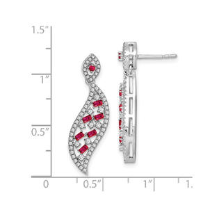 Gem And Harmony 14k White Gold 1 3 Carat Ctw Ruby Dangle Earrings With Diamonds 1 2 Carat Ctw