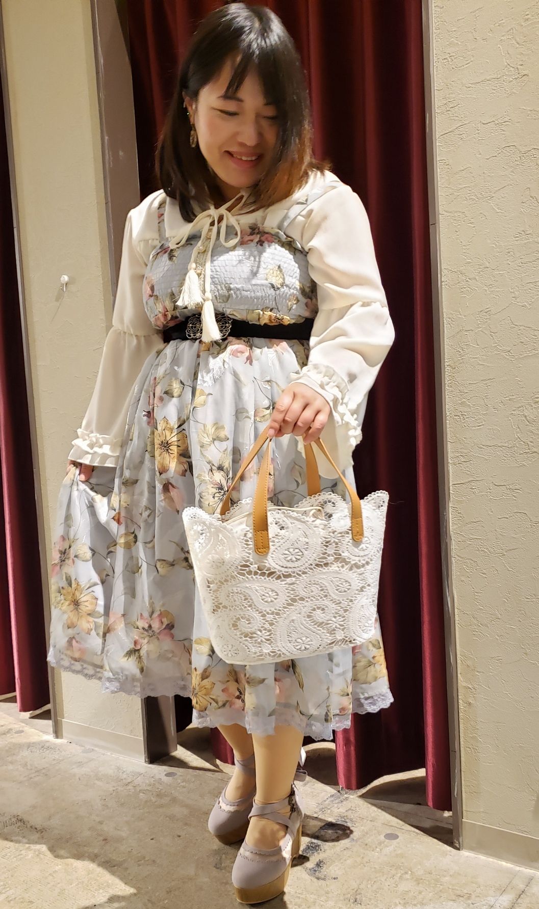 axes femme コーデ シフォン薔薇透けレースボレロ 花 レース柄op みかりんごのぶろぐ