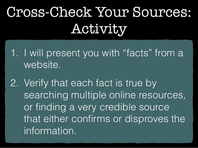 Cross-check of the position information. The importance of cross-checking your information It is so important to cross check our information at all times, to use every available source in our quest to learn more about our ancestors. Topics Doubt, guessing and certainty c2;.