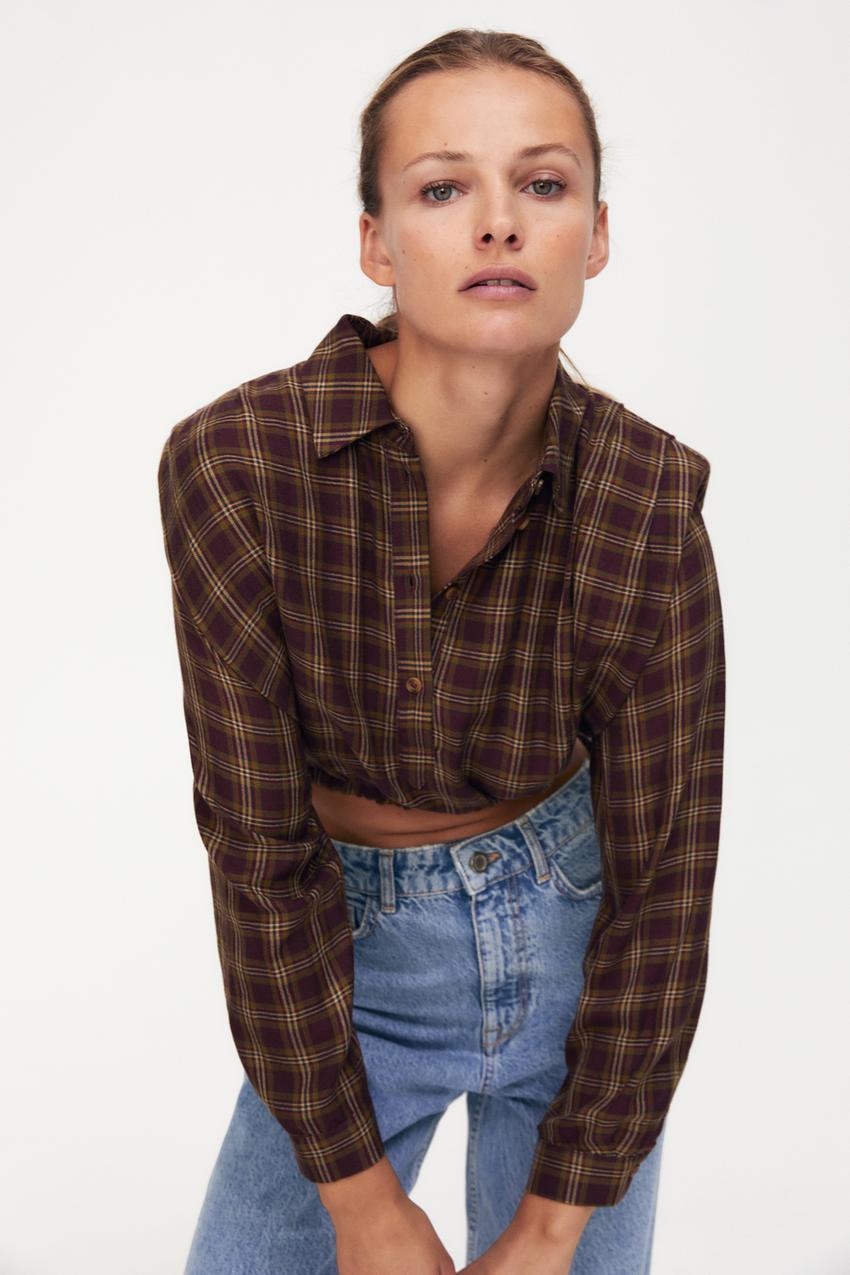 肩パッド付きチェック柄ブラウス Zara Japan 日本