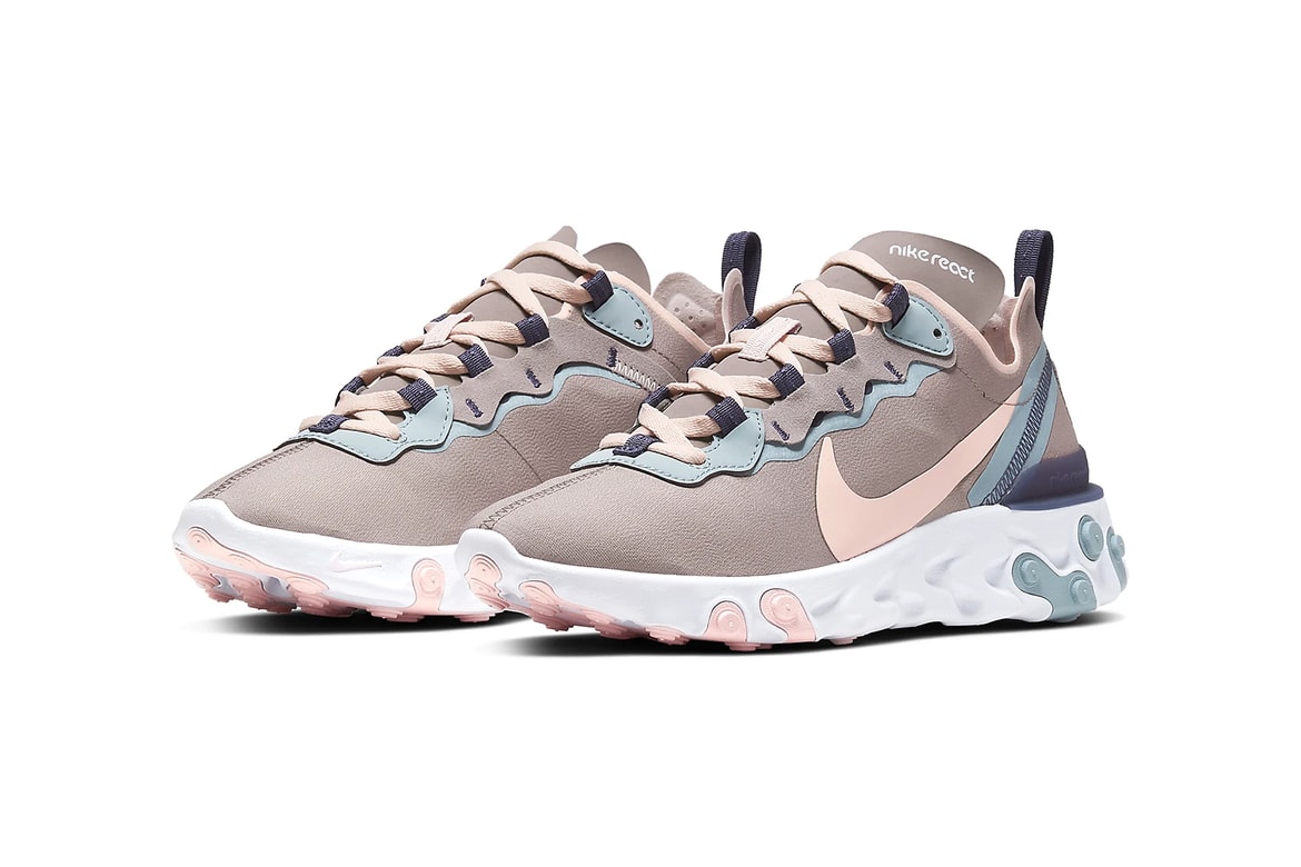 Nike Women's React Element 55 4.5 out of 5 stars 56. The Nike React Element 55 "Pale Pink" utilizes Nike's latest React cushioning innovation in this women's style. Above, a pink-hued colorway wraps the textile upper, which also has a glimmering effect.